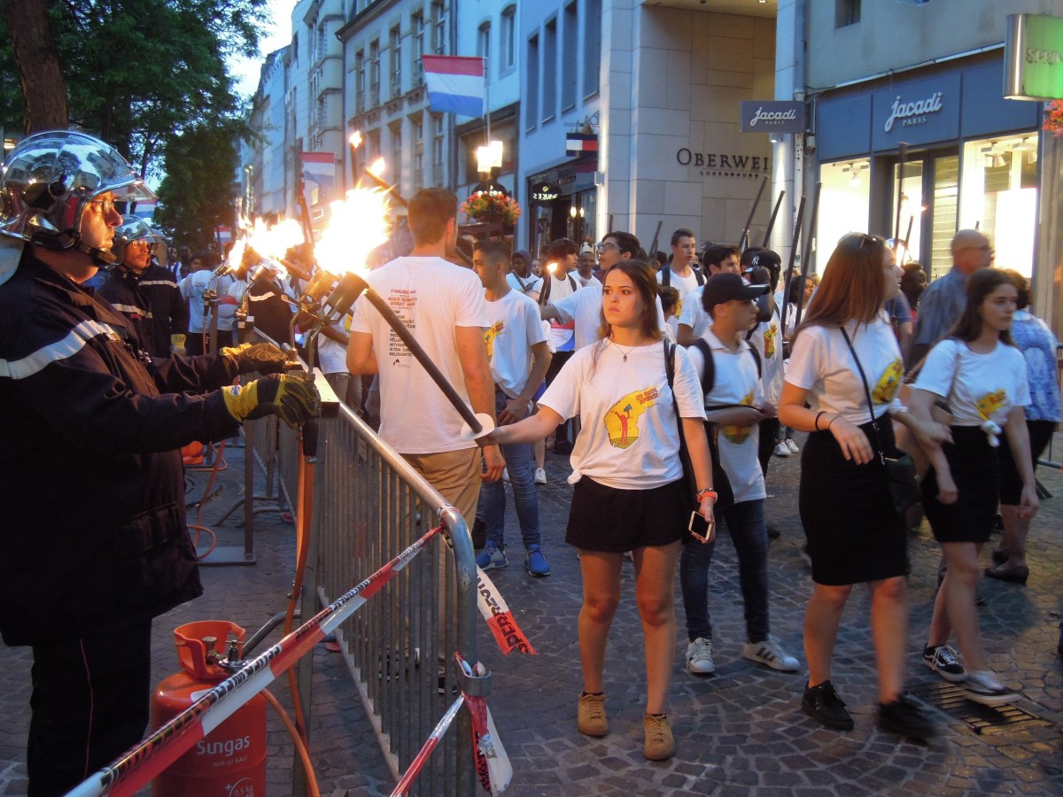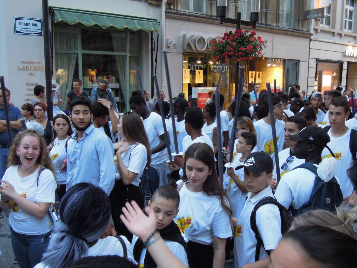 Comme chaque année les maisons des jeunes ont participé au retrait des flambeaux la veille de la fête nationale. Une centaine de jeunes étaient présents ont un groupe a fait une petite choréographie devant la tribune officielle.