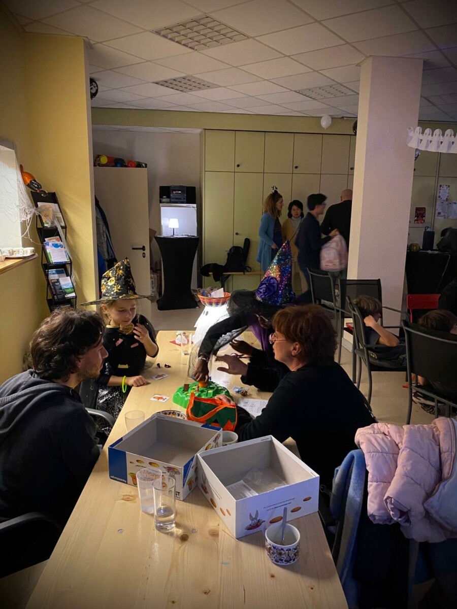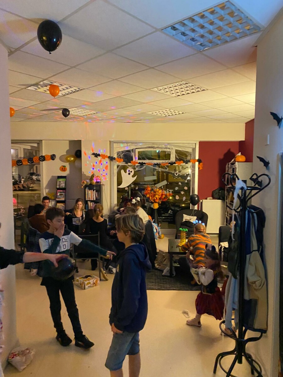 Pleins de petits monstres, accompagnés de leurs parents ou grands-parents, sont venus nombreux pour danser, jouer à des jeux de société, boire du punch, remplir leurs poches de sucreries et surtout se faire de nouveaux amis.