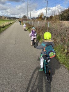 Grace à la proximité de l’école avec notre structure, tous les lundis, nous profitons désormais pour permettre aux enfants de retourner à l’école en vélo accompagnés par notre éducateur sportif.
