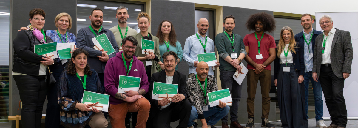 Après le discours du président, qui a relevé les points importants de l’année écoulée et a souligné encore une fois la nécessité de multiplier les efforts en vue du renforcement de la démocratie, le conseil d’administration a honoré les collaborateurs qui ont travaillé pour l’association pendant 10, 20 ou 30 ans. Pour le groupe des 10 ans on a pu accueillir sur la scène 22 collaborateurs, 2 pour celui des 20 ans et 3 pour celui des 30 ans.