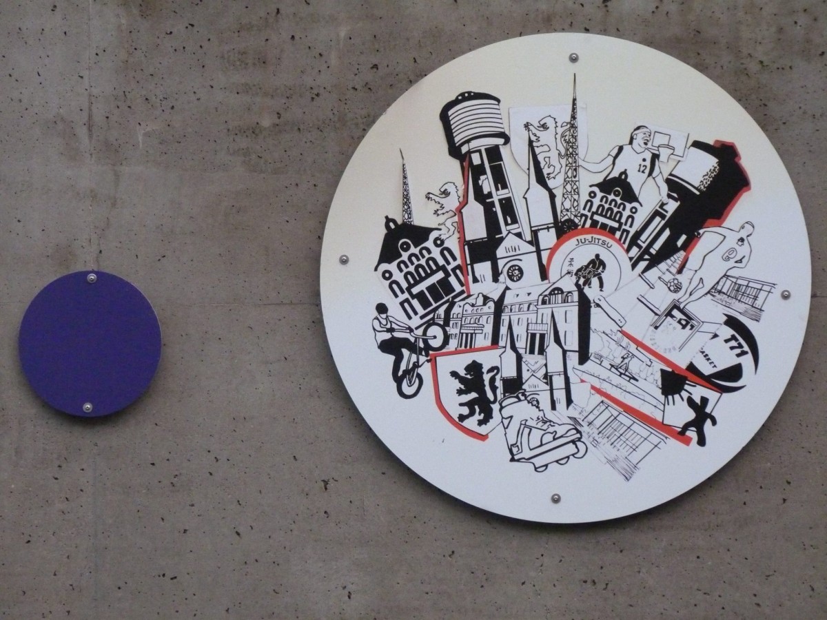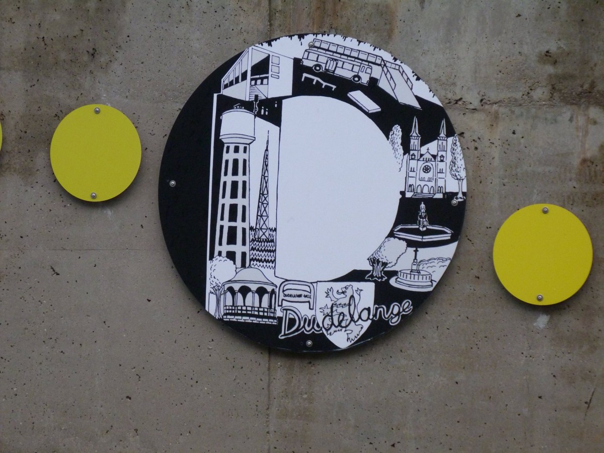 Ils ont ensuite préparé la décoration pour le mur de la rue de la Libération. Des images de Dudelange et de l’Arbed ont été imprimées sur des plaques en métal et accrochées au mur.