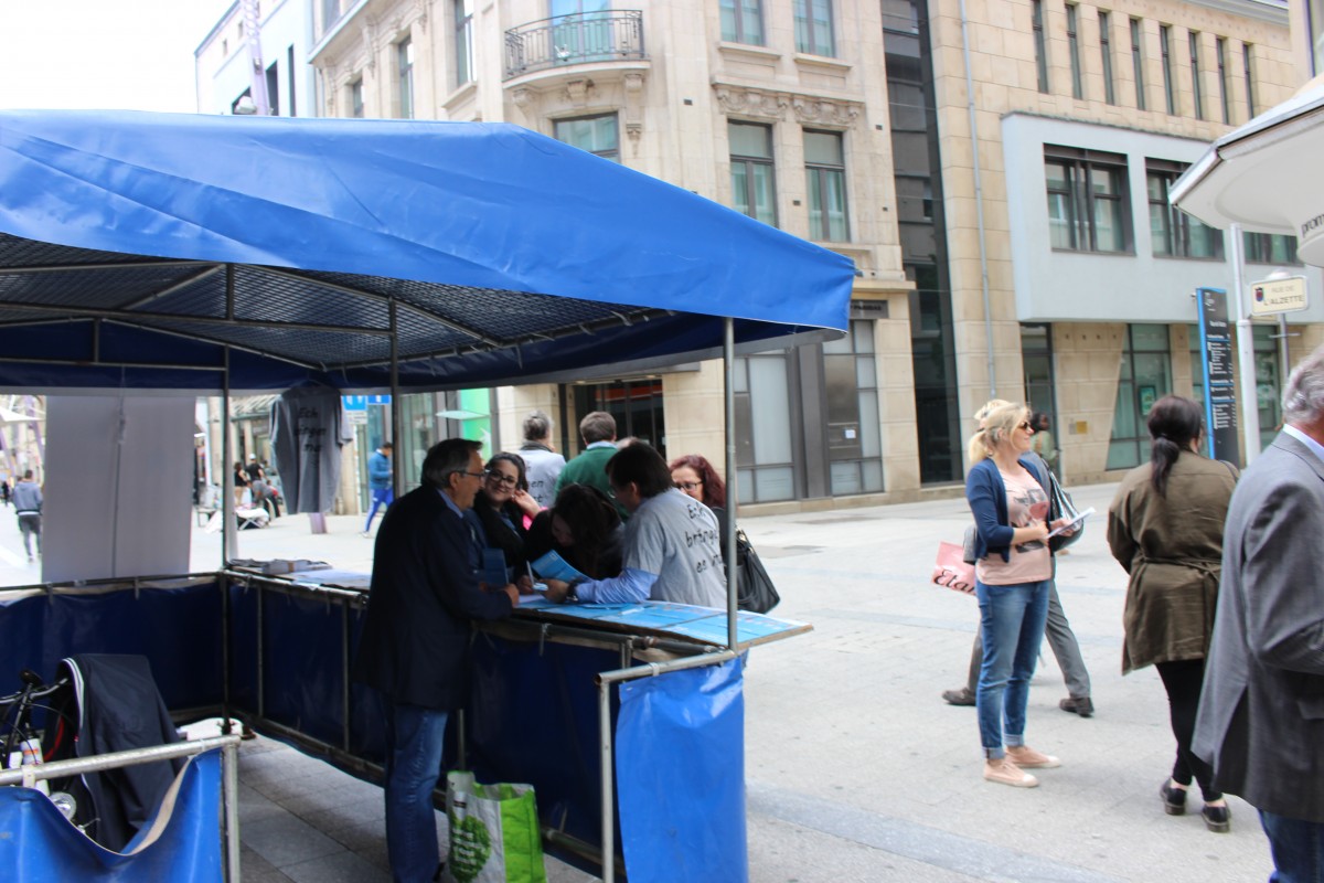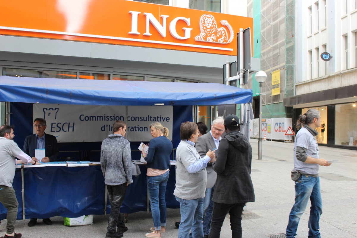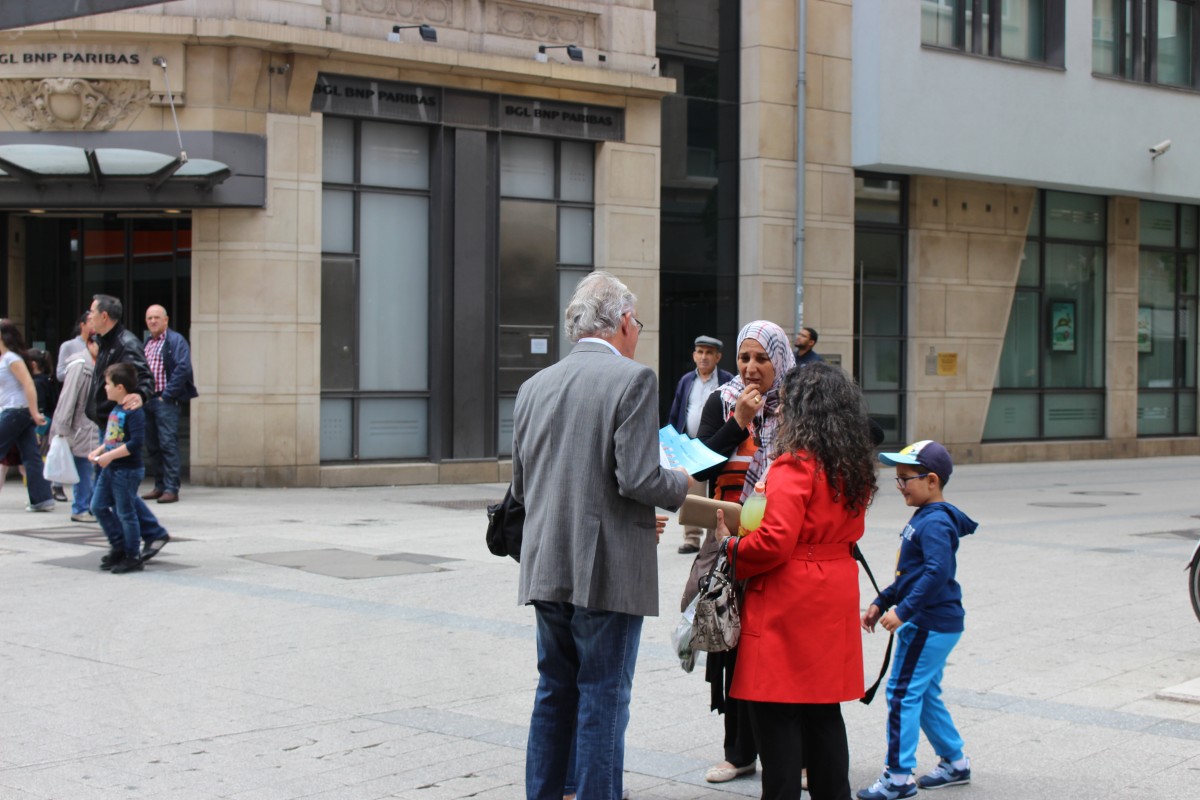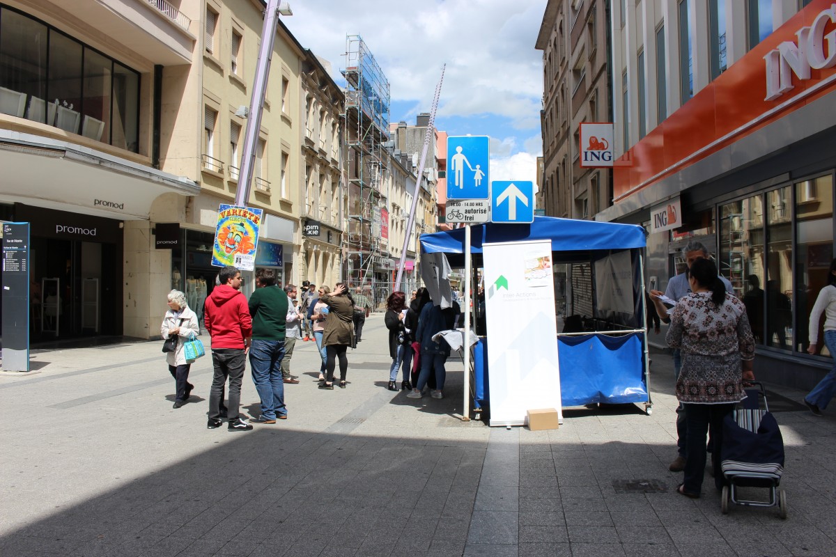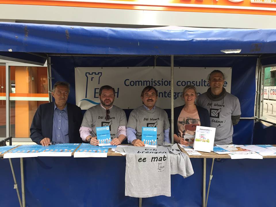 En date du samedi 13 mai 2017 (Journée nationale d’inscription aux listes électorales), le Projet Ensemble s’était associé à la CCCI de la Ville d’Esch/Alzette à un stand d’information concernant la participation des étrangers aux élections communales et leurs inscriptions sur ces mêmes listes. L’action fut un franc succès car 15 personnes se sont inscrites ce jour-là à Esch/Alzette, permettant à notre service Projet Ensemble d’informer le public quant à nos activités offertes dans les quartiers d’intervention.