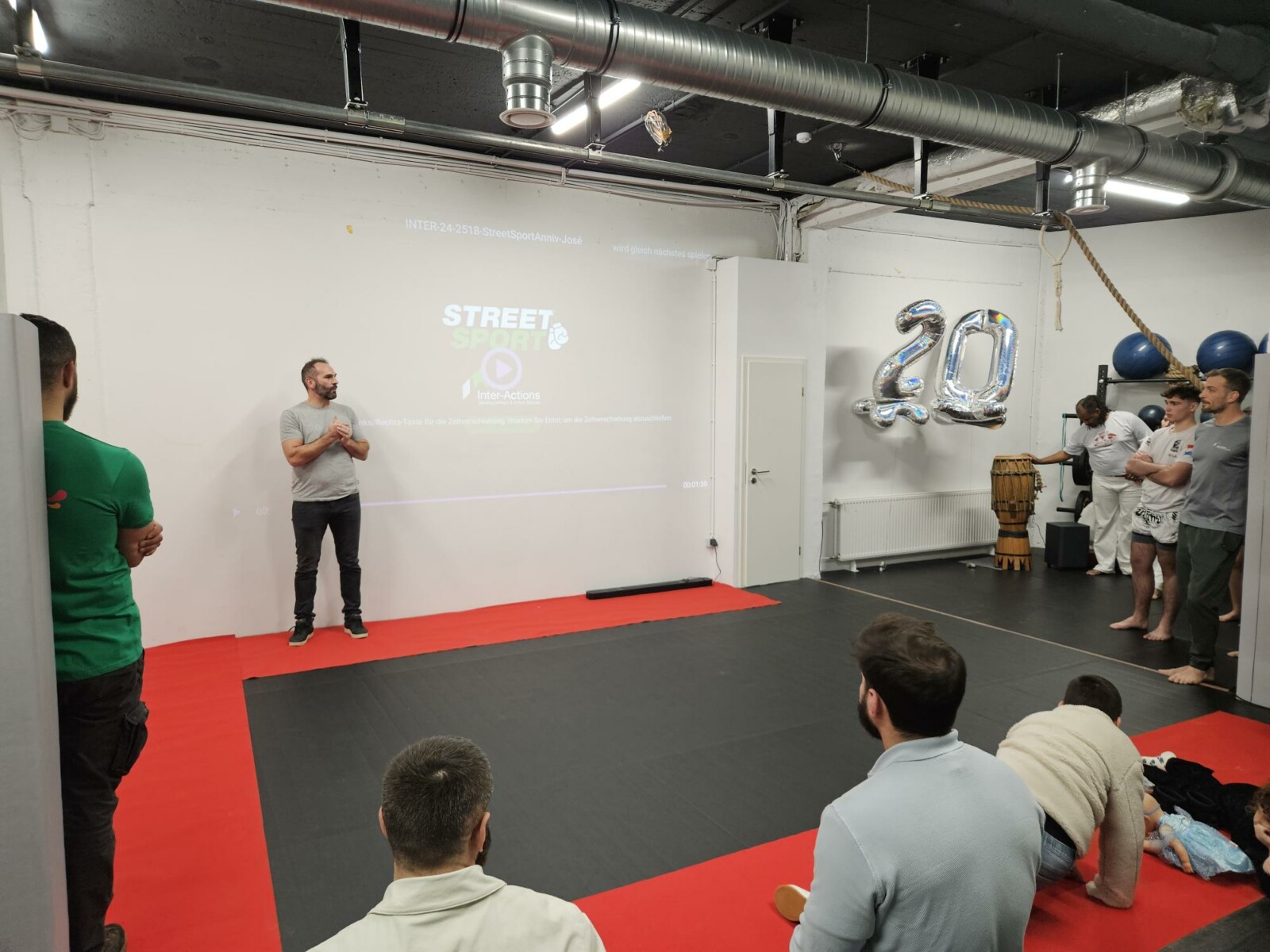 Depuis 2004 le Streetsport est une offre gratuite, de sports de combat, de danse, de graffiti, qui s’adresse aux jeunes qui sont dans la rue ou qui sont attirés par celle-ci. L’objectif est de leur permettre à participer à des entrainements ou des ateliers, de les rencontrer ainsi une fois par semaine et de créer pour eux un point de stabilité. Une fois ceci atteint on peut travailler avec eux sur leurs propres objectifs et lentement arriver à un projet de vie.