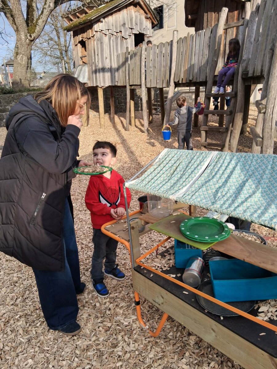Dans l’espace avec le paillage, les enfants avaient à leur disposition différents jeux de sable, des pelles et des seaux. Ils ont creusé, transporté et exploré ensemble avec beaucoup d’enthousiasme.