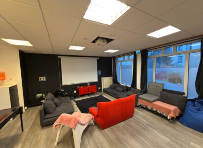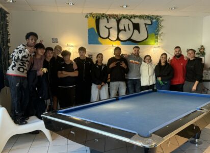 L’espace « rencontre » : un lieu convivial avec canapés, Wi-Fi, kicker, billard, playstation, table de ping-pong et jeux de société pour se retrouver entre amis et faire de nouvelles connaissances. L’équipe éducative assure le cadre de la maison, anime des activités sportives et créatives et permet d’offrir un espace de détente et d’épanouissement.