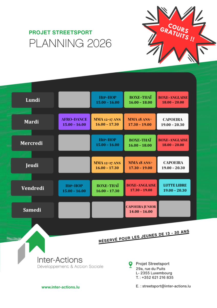 Depuis 2004 le Streetsport est une offre gratuite, de sports de combat, de danse, de graffiti, qui s’adresse aux jeunes […]
