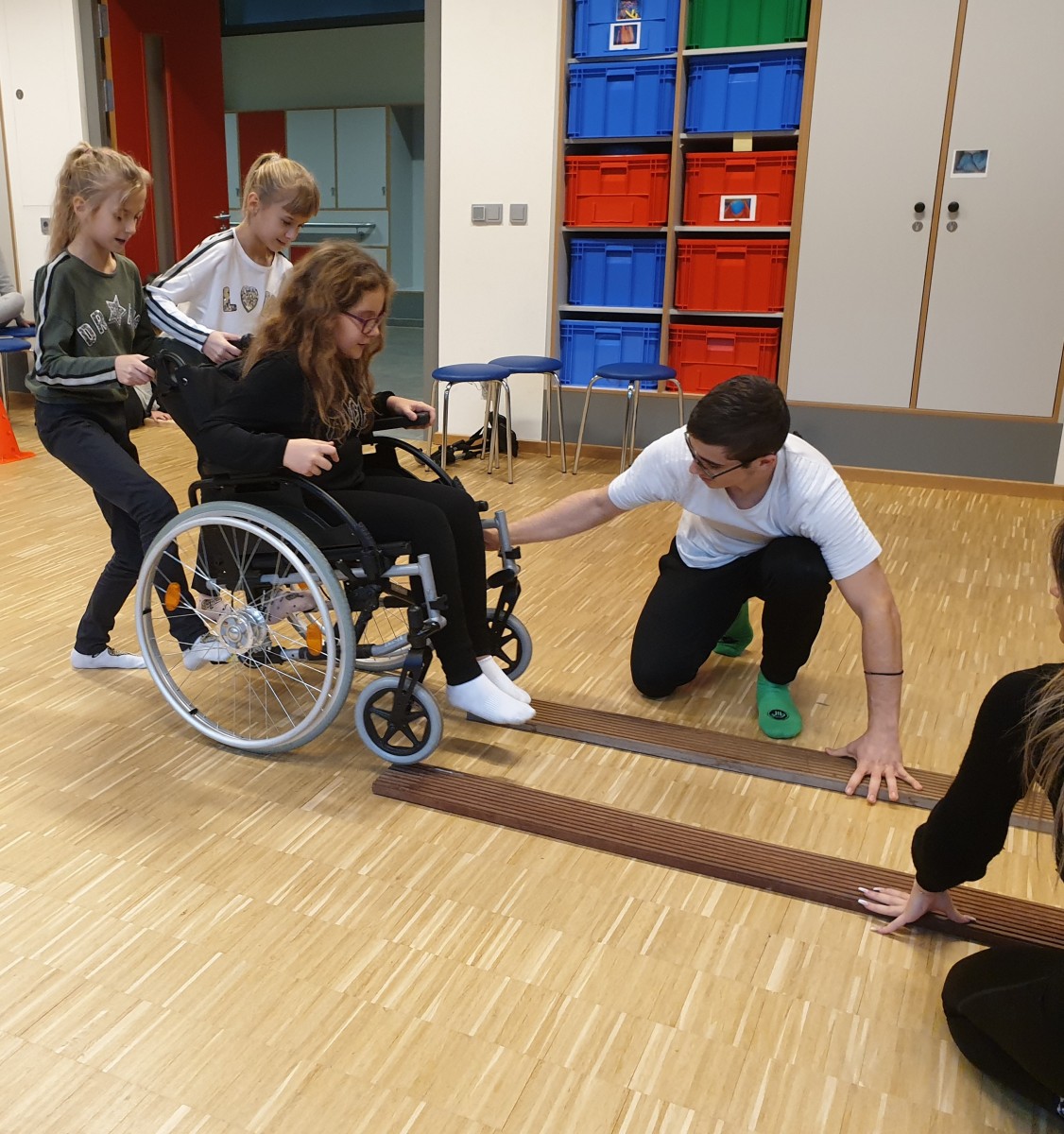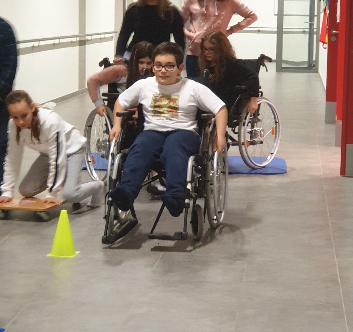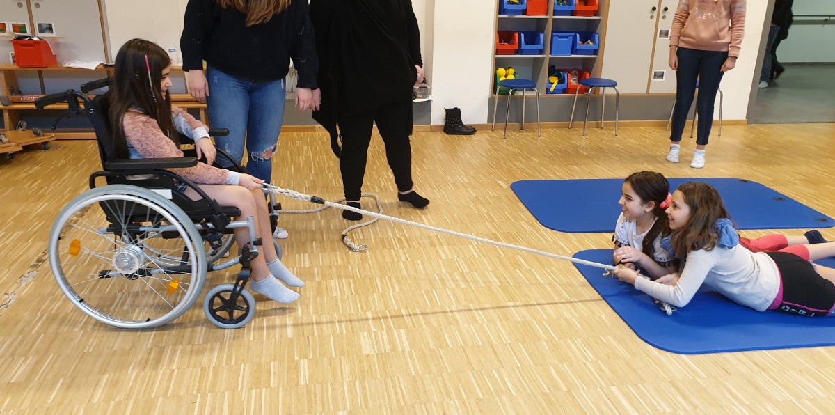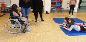 Le but du projet est de sensibiliser les enfants au sujet de la mobilité réduite chez une personne. Pendant notre visite, les enfants ont eu la possibilité de se mettre, fictivement, dans la situation d´une personne avec chaise roulante.